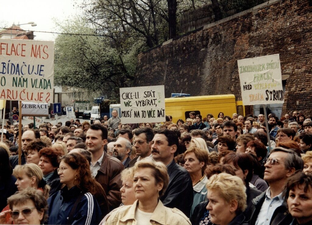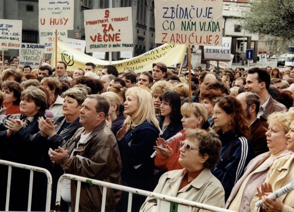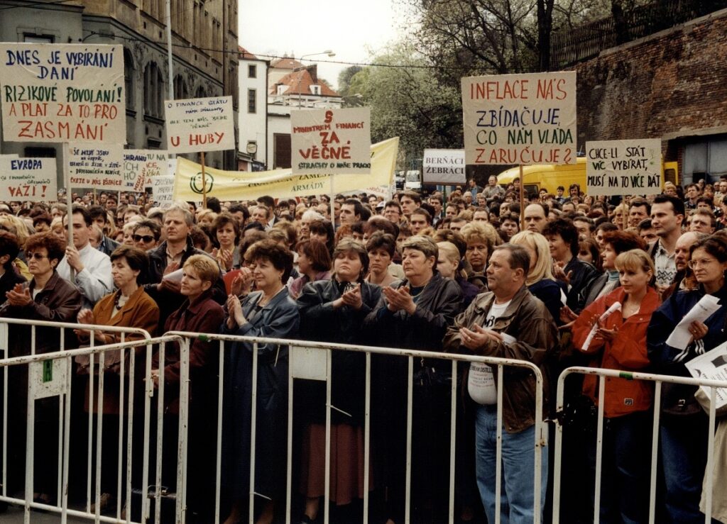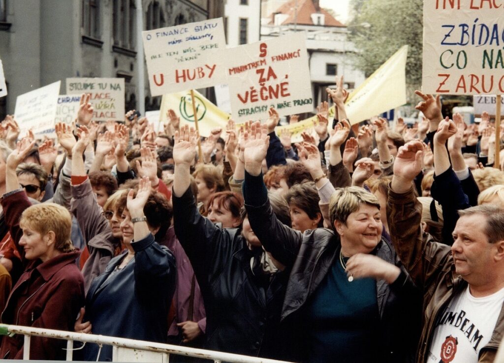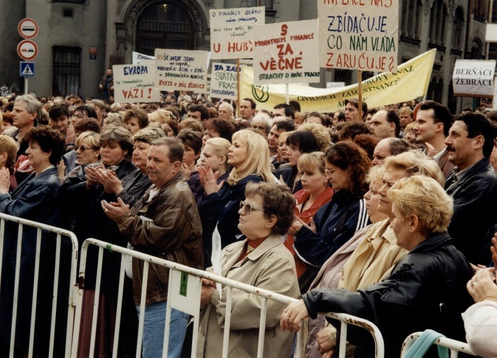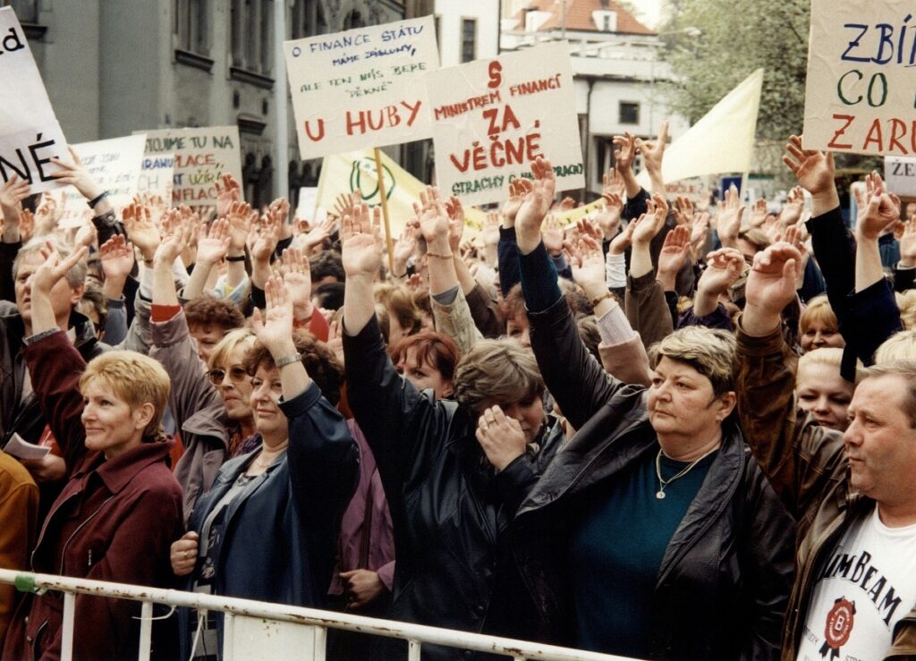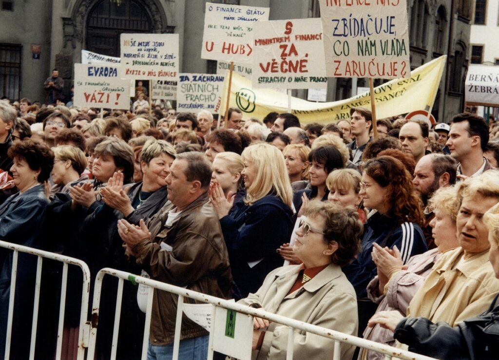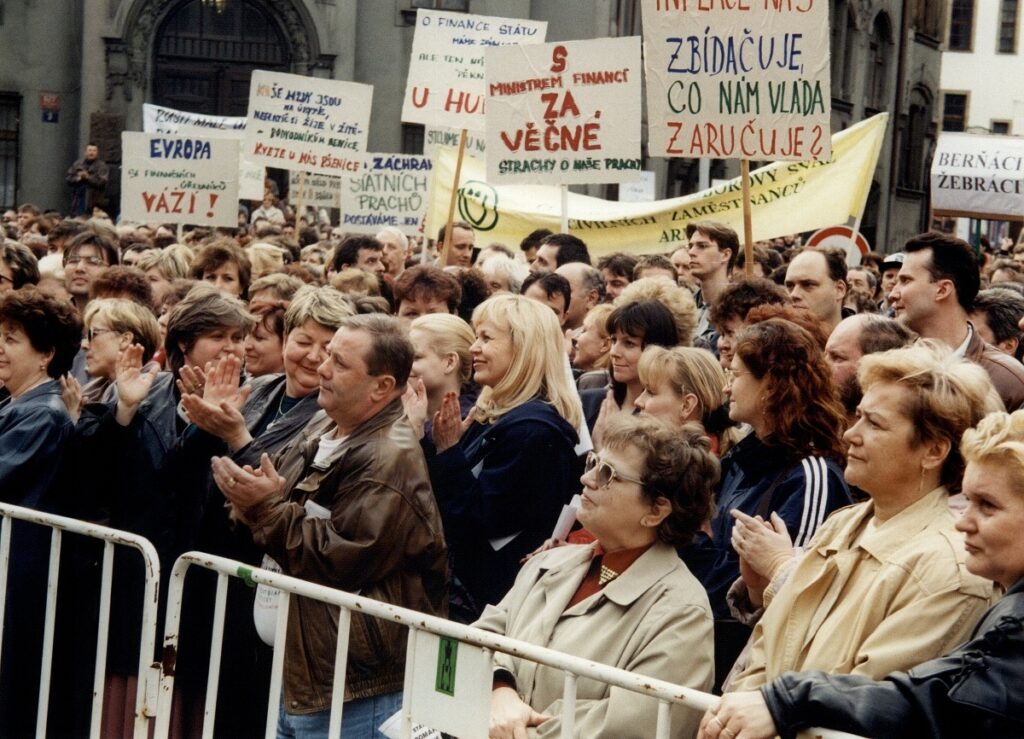 Demonstrace odborových svazů před úřadem vlády 1998 – FOTO