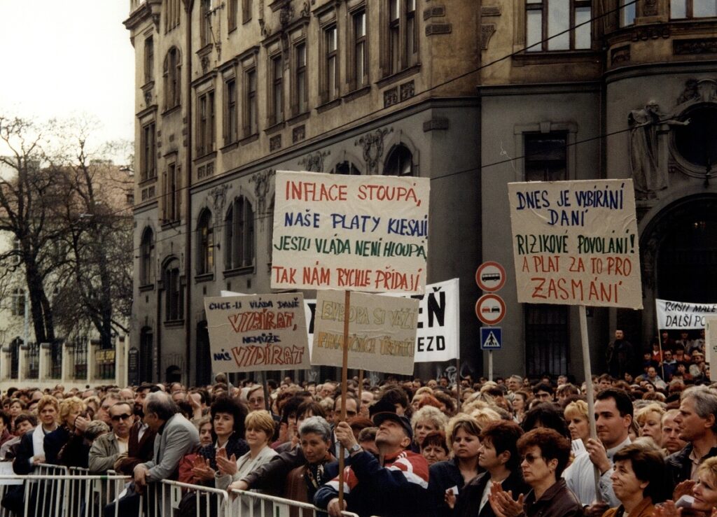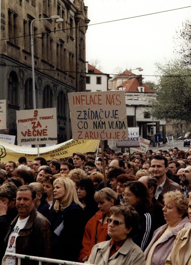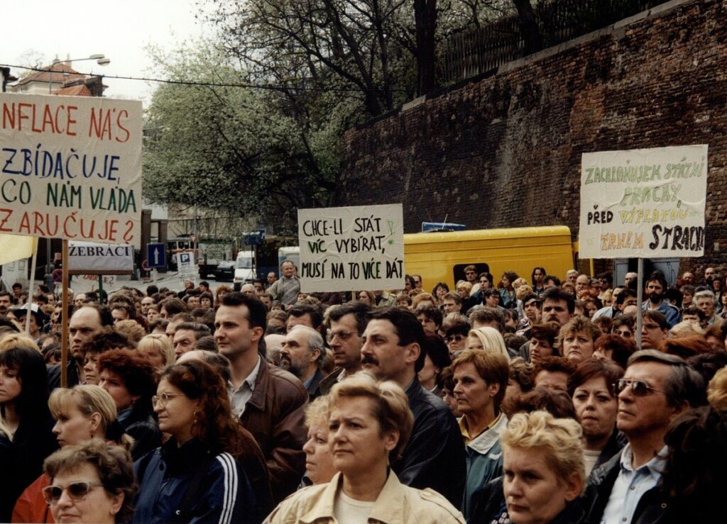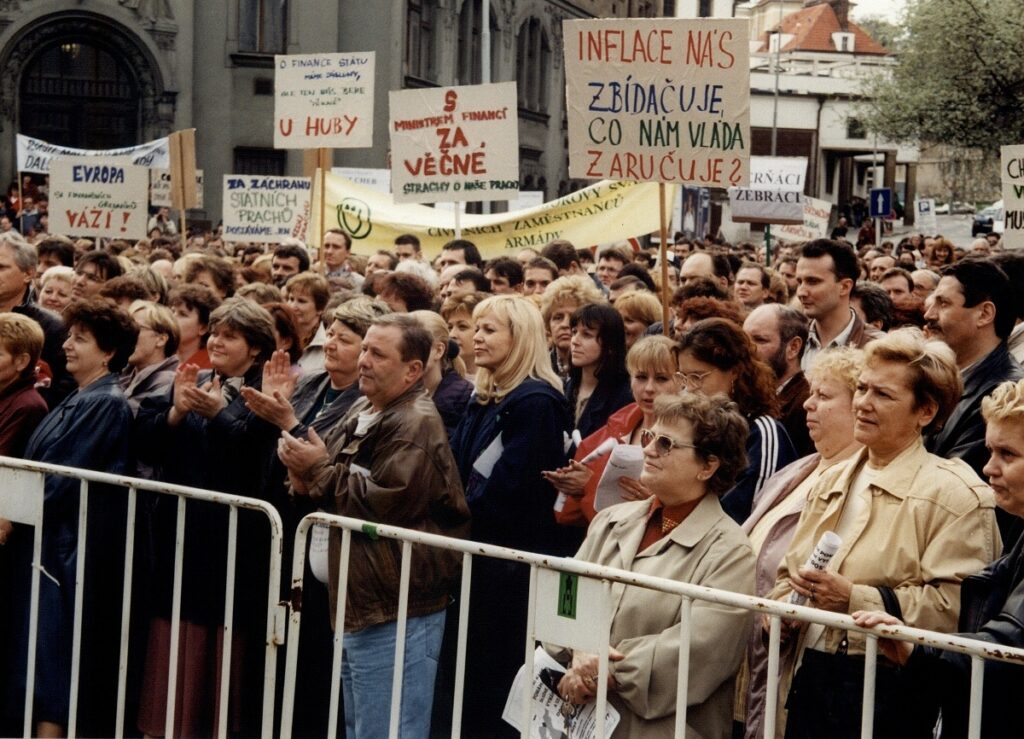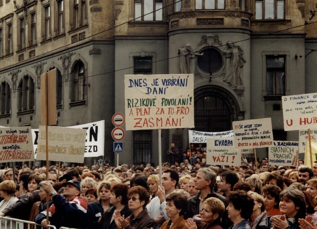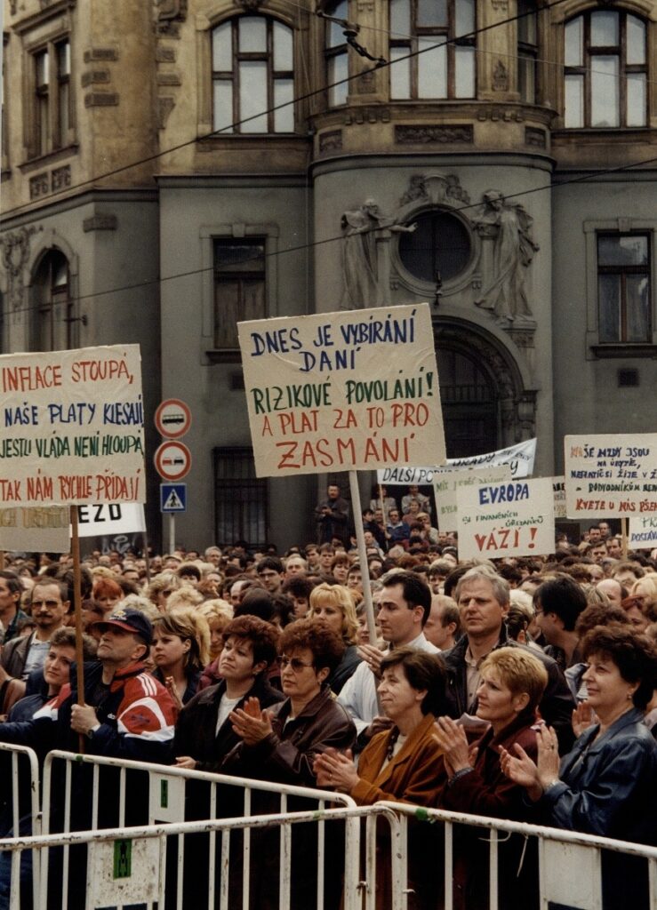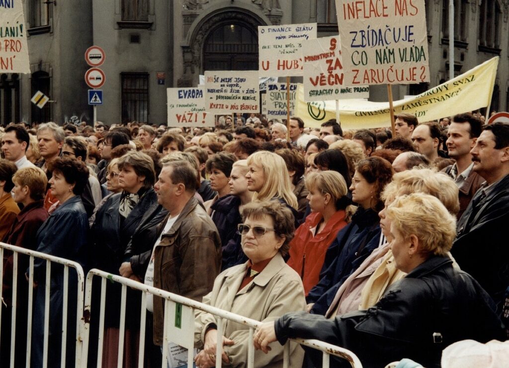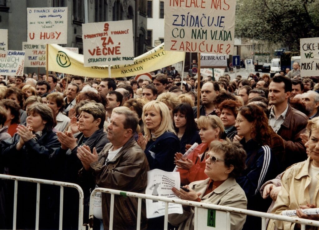 Demonstrace odborových svazů před úřadem vlády 1998 – FOTO