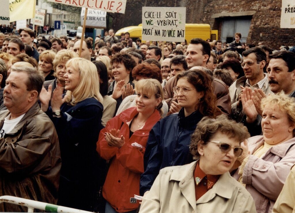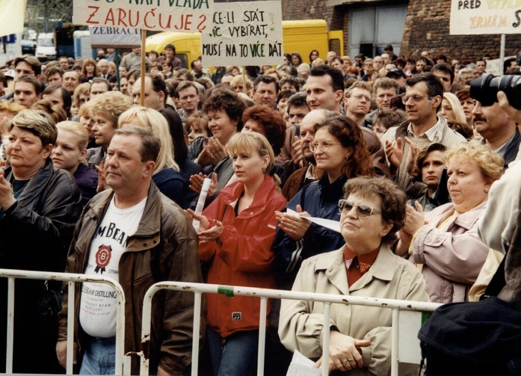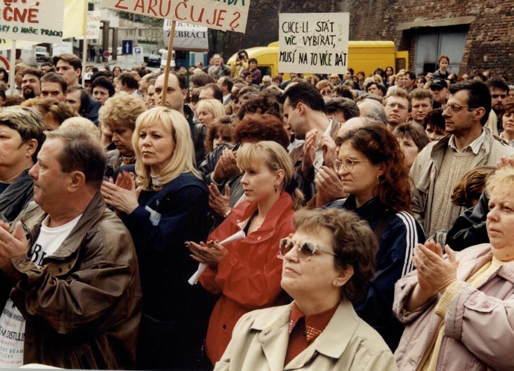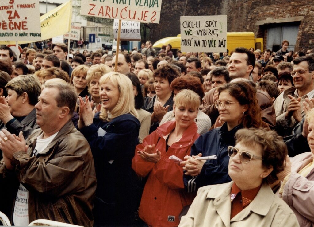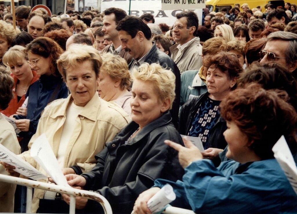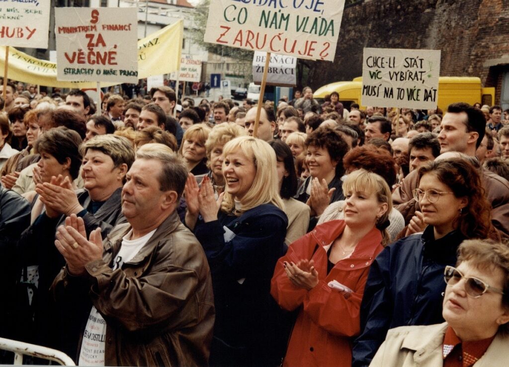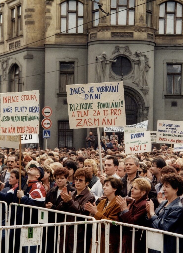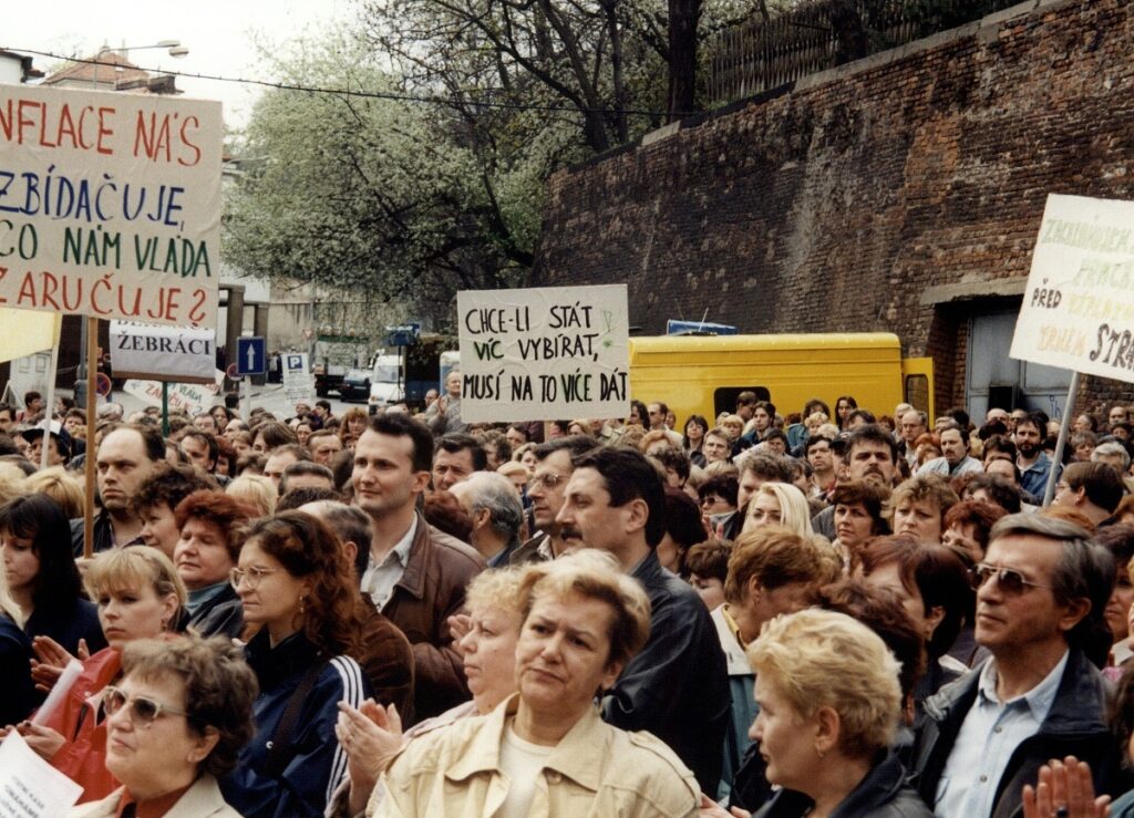 Demonstrace odborových svazů před úřadem vlády 1998 – FOTO